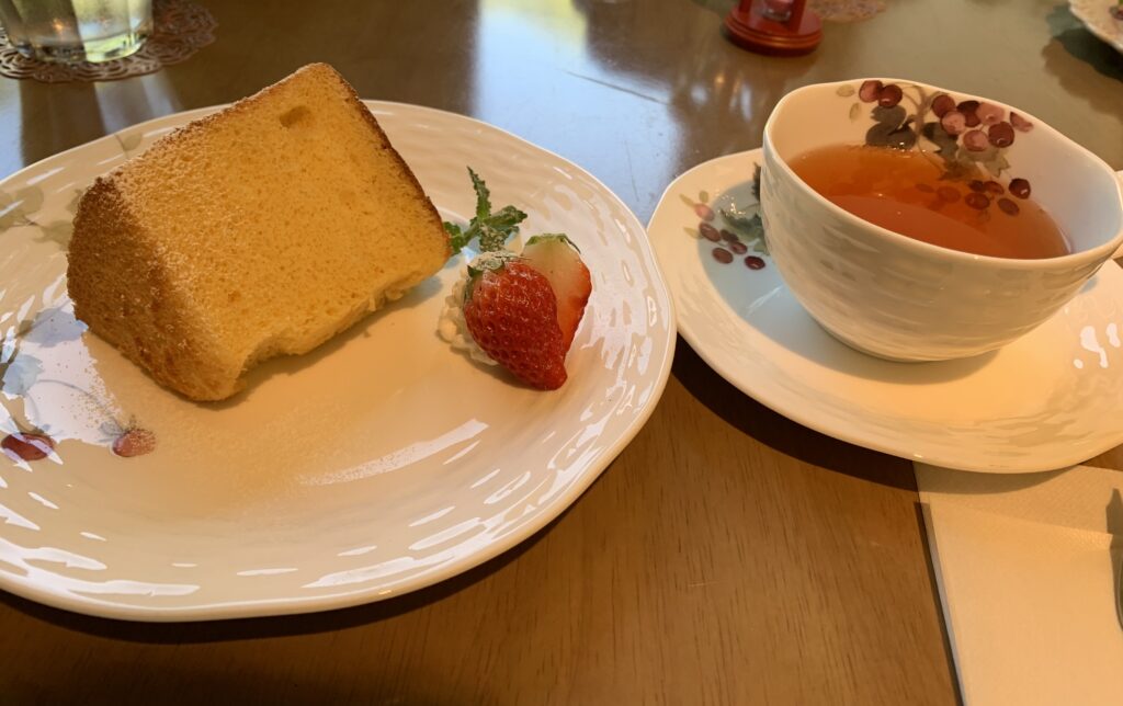 私はレモン風味のふわふわ米粉のシフォンケーキと、キャラメル香るノンカフェインのルイボスティーで、ちょっと早めのティータイム。静かな温泉街にぴったりの、癒しの時間でした。