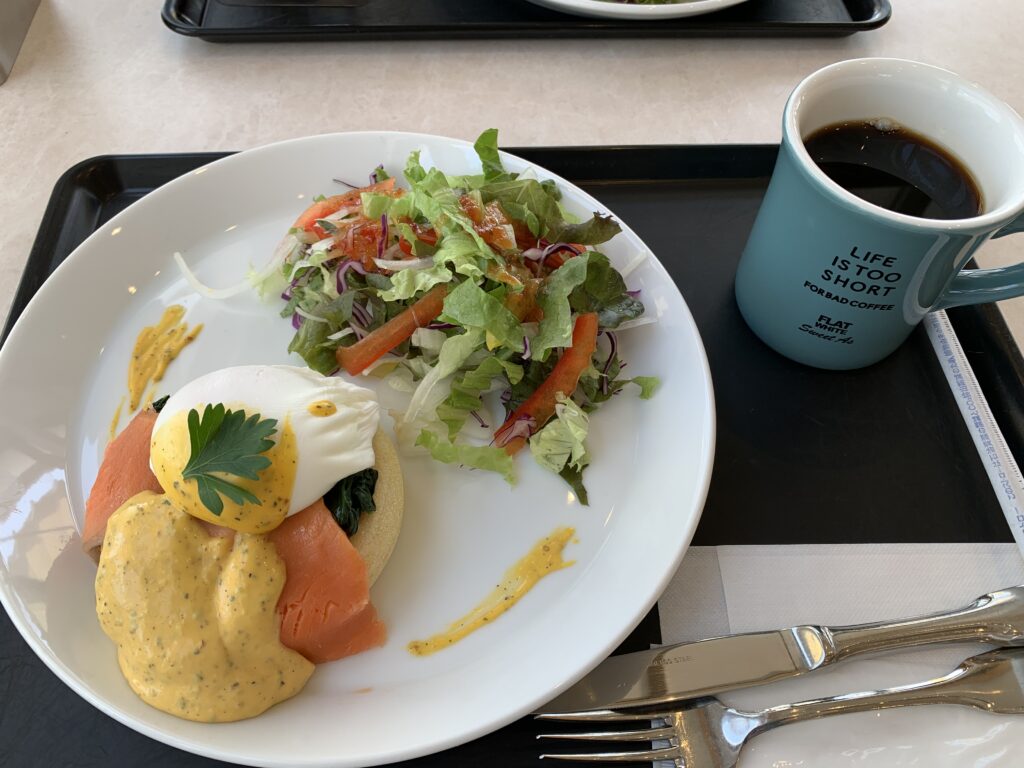 サーモンと半熟卵のエッグベネディクトを店内でいただきました。